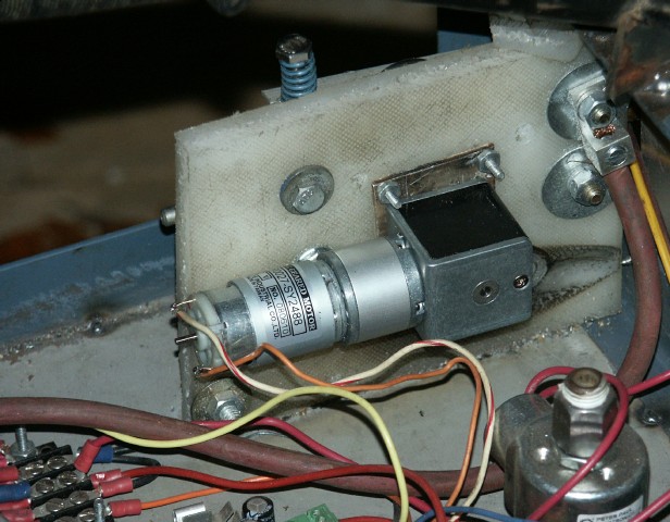 With no way to use it, it has sat for a long time. I decided I needed it. Still no money to build boards. So, I simply wired a 1 ohm, 10 Amp rheostat between the field and +12V. For arc, it worked as before; surprisingly well. This is the circuit described here. I guessed set at the middle position and it was just about right for 3/32 rods; actually a bit high. Looks like a 10 Ohm would be best.