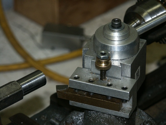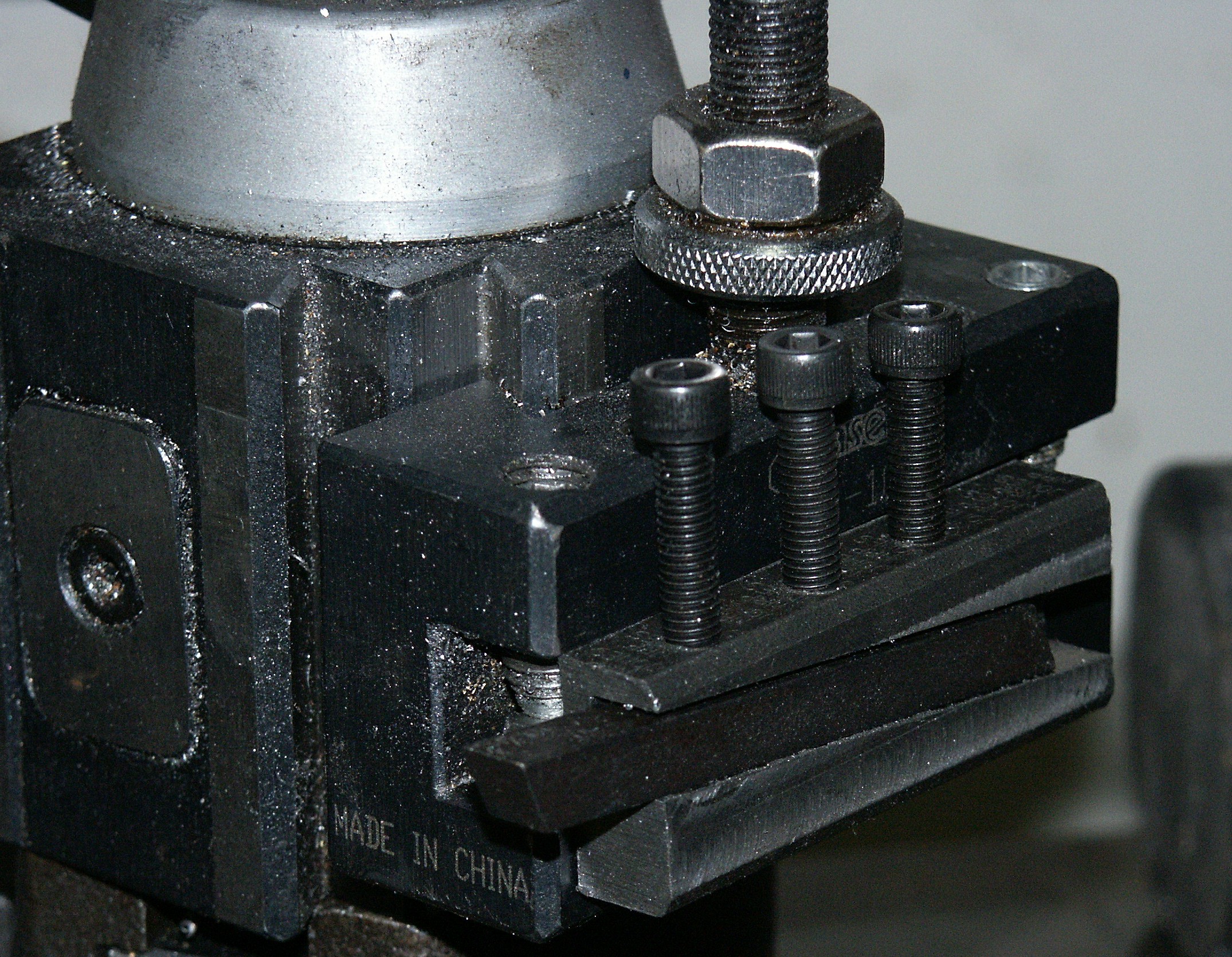 I picked up an A2Z Quick Change toolpost for the Sherline Lathe. It came with 2 regular tool holders, a parting tool holder and a small boring bar holder. It worked well. The picture on the left is it actually installed on my Craftsman AA/Dunlap lathe. It worked just as well on that lathe also. |